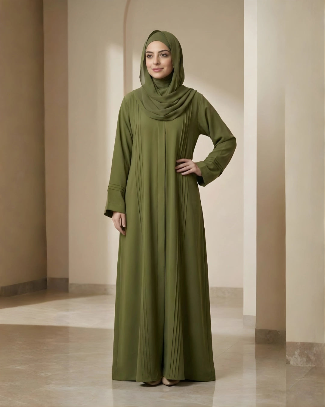 Eshal is a modern yet timeless abaya crafted from Georgette fabric. Featuring a front-open design with refined piping details on the main front and cuffs, Eshal delivers effortless sophistication while remaining comfortable for everyday wear. A perfect choice for women who prefer minimal elegance with a polished finish.