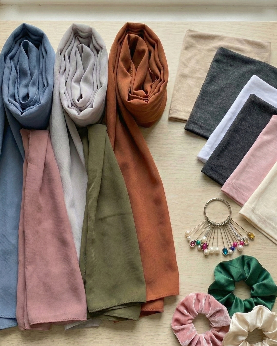 Elevate your everyday modest style with our Hijab Essentials Combo Deal, thoughtfully designed to offer comfort, elegance, and complete styling convenience. This set includes Six premium chiffon georgette hijabs, paired with Six tube band hijab caps, three ring of hijab pins, and three silk scrunchie. Lightweight, breathable, and easy to style, this all-in-one bundle is perfect for daily wear, office looks, or casual outings—making it an ideal choice for modern modest wardrobes.