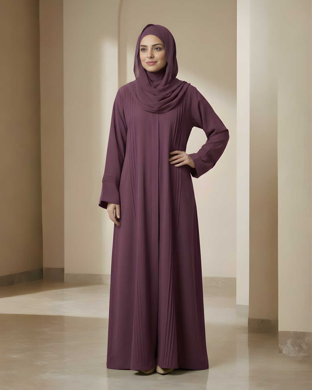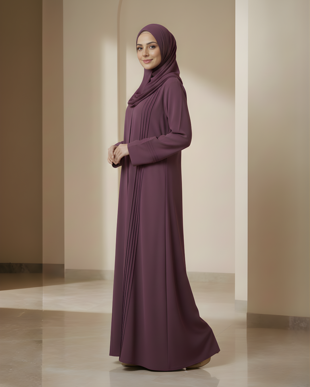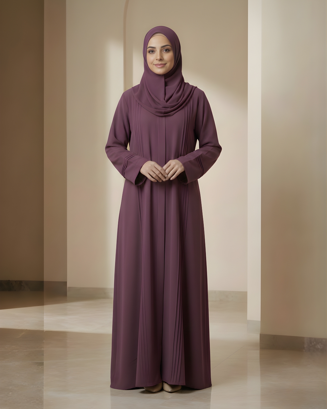 Sanam is a timeless abaya designed for effortless grace and everyday sophistication. Crafted from premium Nida fabric, this front-open abaya features subtle piping details along the main front and cuffs, adding a refined finish without overpowering the design. Sanam is a versatile choice, seamlessly transitioning from casual daytime wear to formal occasions.