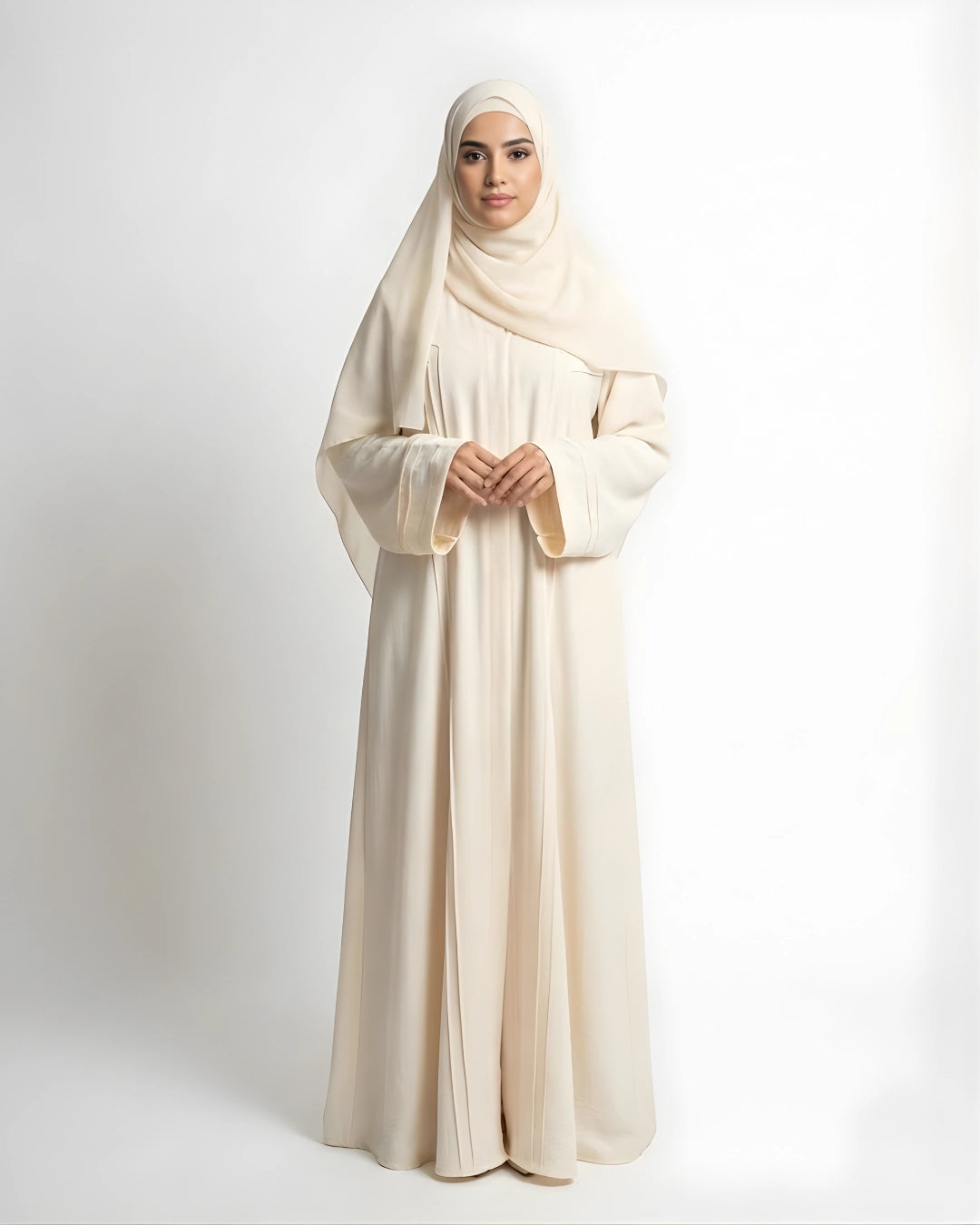The Sanam Abaya is a sophisticated blend of style and functionality, designed for the modern woman who demands both luxury and practicality. Tailored from exquisite Romantic Nida Fabric, this piece ensures an exceptionally soft, breathable feel and a graceful drape that elevates the entire look. The sleek design provides a streamlined, flattering silhouette, achieving a genuine luxury look that transitions seamlessly across various settings.