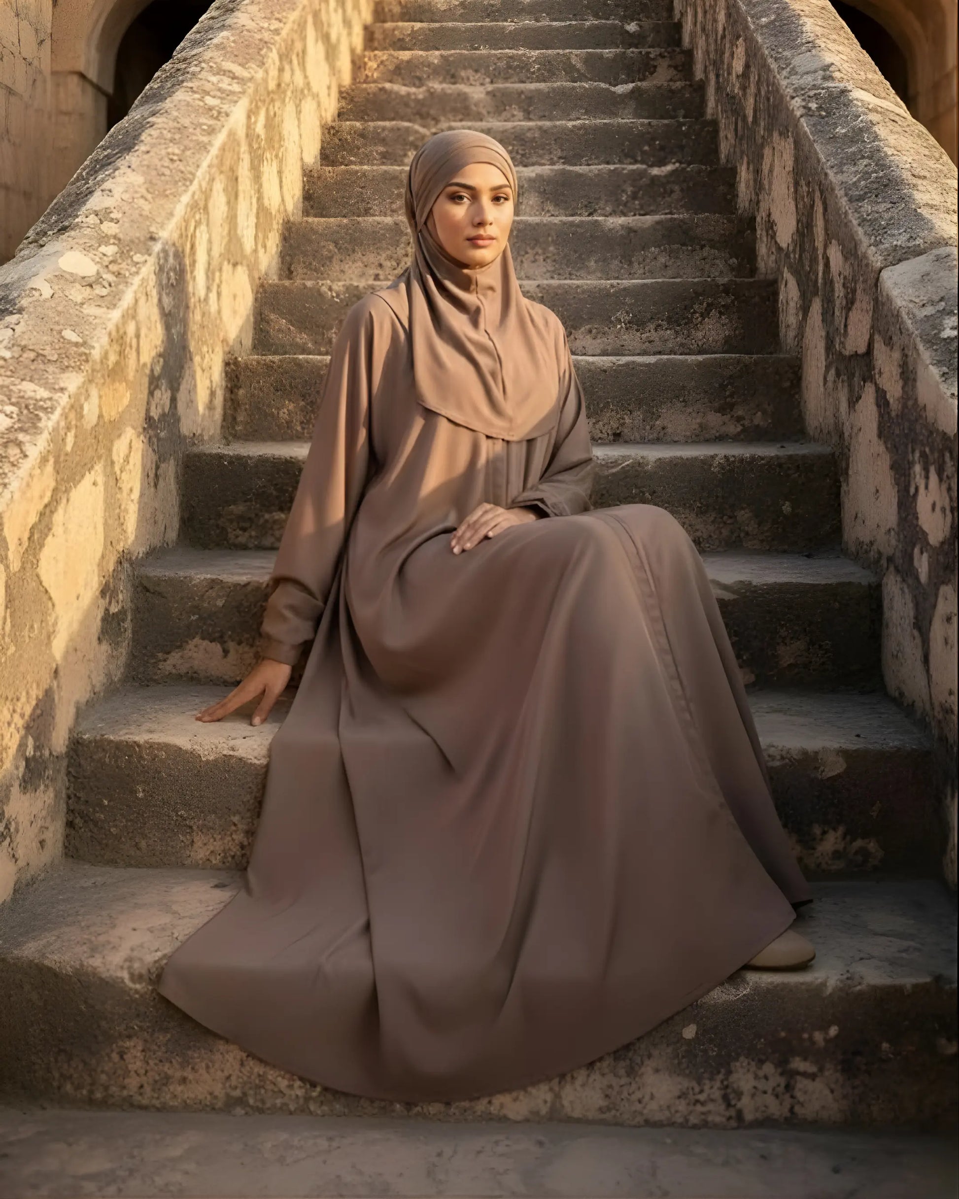 Designed as a simple daily wear casual abaya, its clean lines and practical open-style designer cut offer exceptional versatility for layering over any outfit. Complete with a perfectly matching hijab, the Zainab Abaya is the essential foundational garment for the modern woman seeking maximum comfort, convenience, and subtle sophistication in her casual wardrobe
