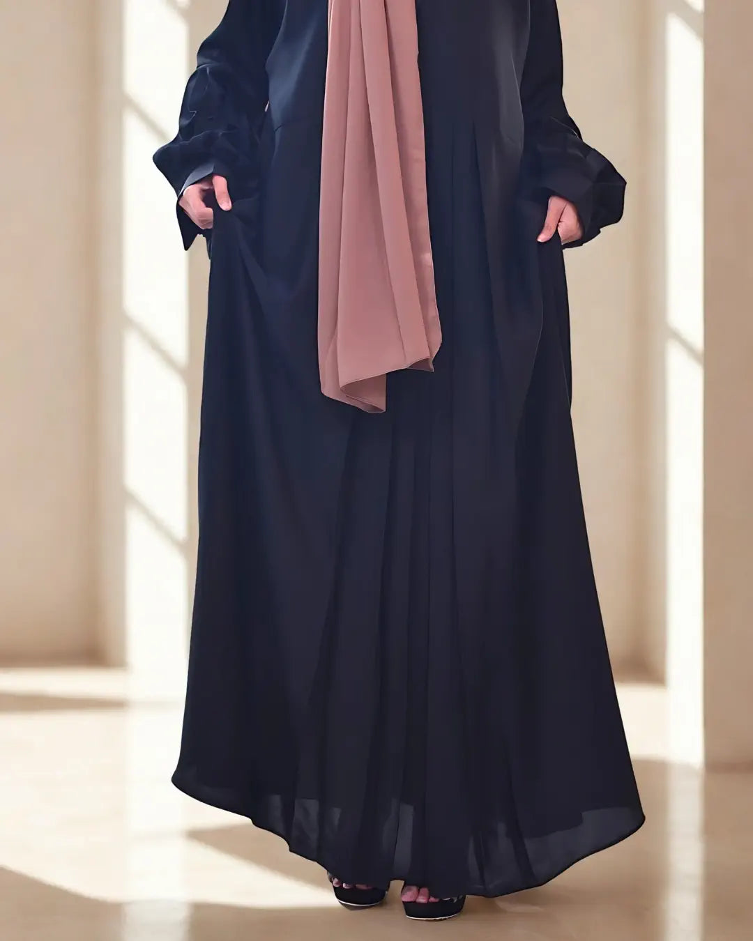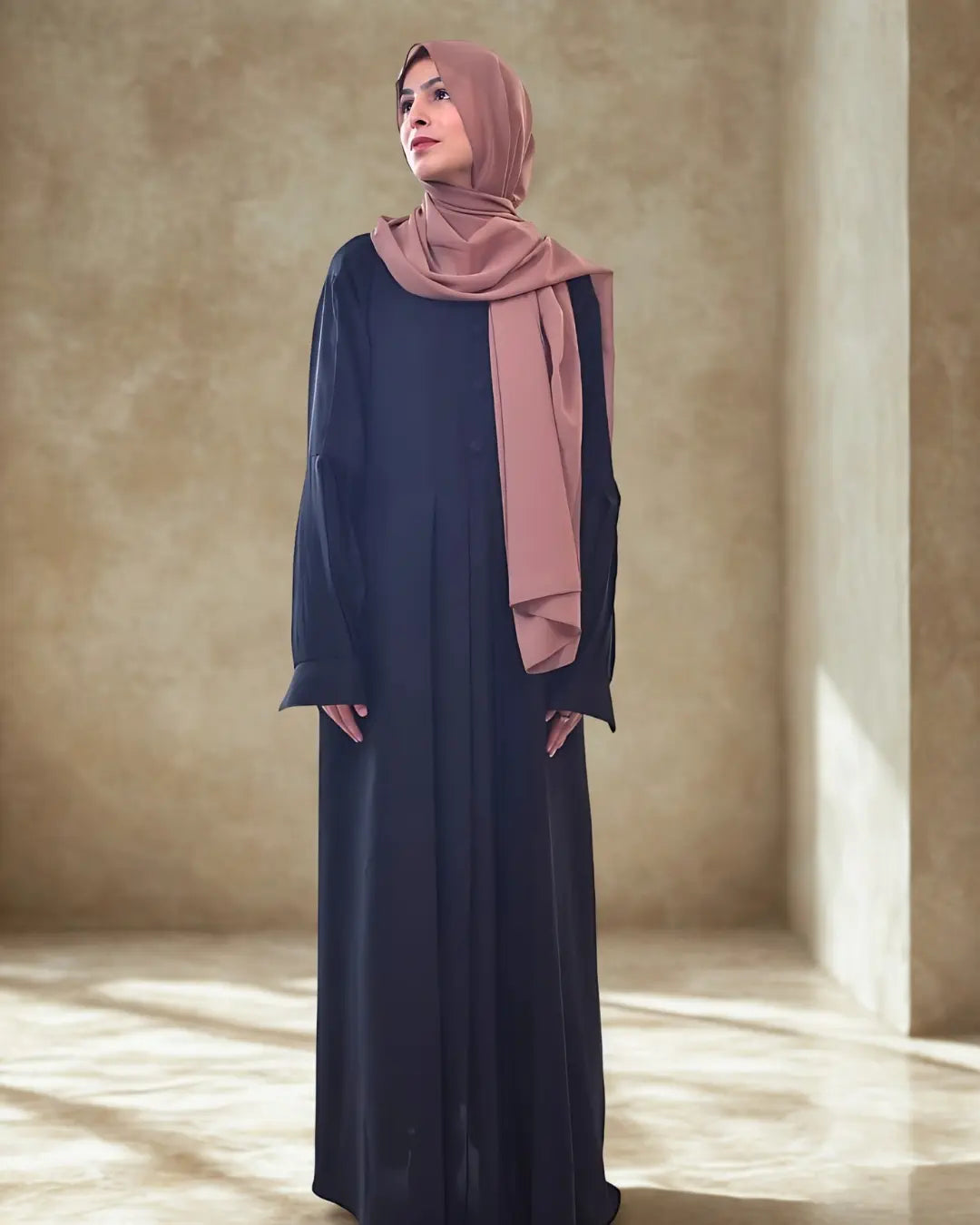 Expertly crafted with precision and care, the Hanna abaya showcases exquisite plate work intricately designed on both the front and sleeves, highlighting exceptional craftsmanship. Each detail is thoughtfully executed to enhance the garment’s elegance, complemented by a stylish button that adds a refined touch. This abaya combines traditional artistry with modern sophistication, making it a distinguished choice for those who appreciate quality and timeless style. Perfect for formal occasions or everyday wear, the Hanna abaya offers both comfort and grace in one beautifully tailored piece.